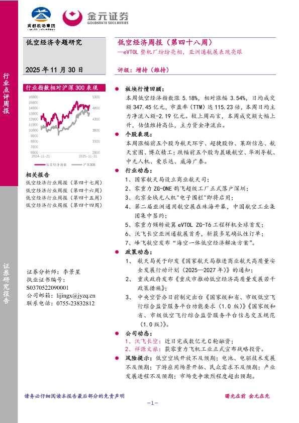 【金元证券】【202511】低空经济周报(第四十八周):eVTOL整机厂纷纷亮相,亚洲通航展表现亮眼-11页