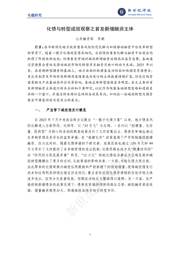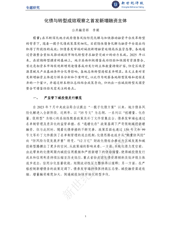 【公共融资部 李娟】【2025】化债与转型成效观察之首发新增融资主体-13页