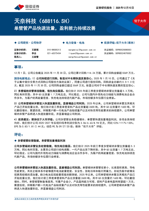 【国信证券】【202512】天奈科技-单壁管产品快速放量_盈利能力持续改善-6页