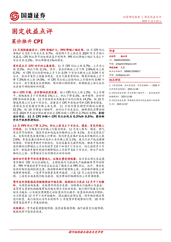 【国盛证券】【202512】固定收益点评|菜价推升 CPI-7页