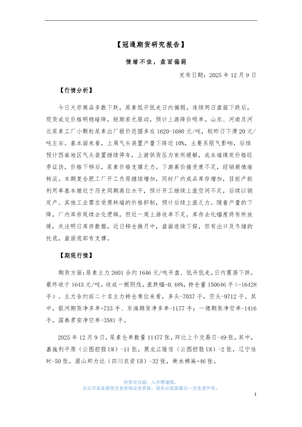 【冠通期货股份有限公司】【202512】情绪不佳,盘面偏弱-4页