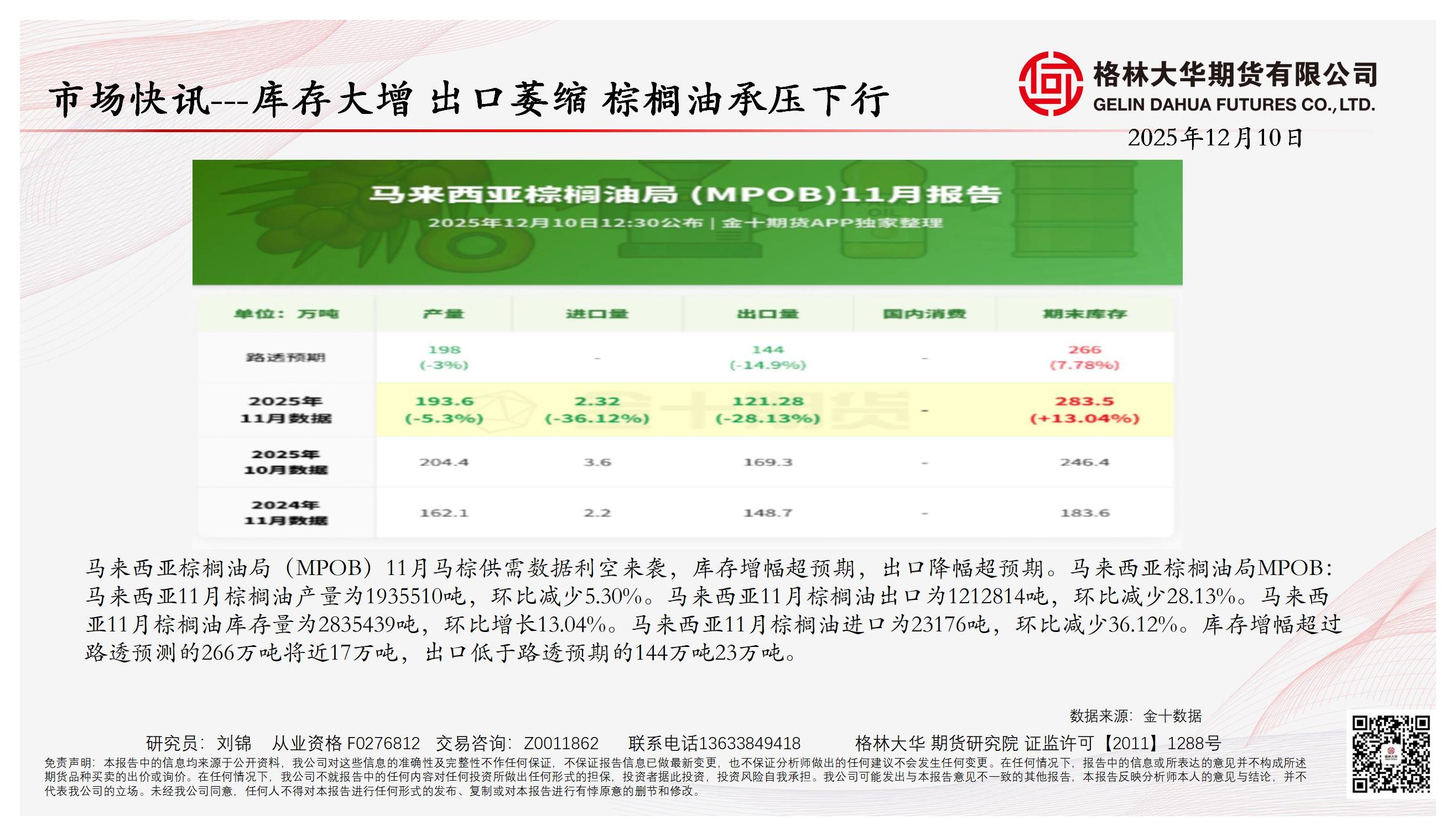 【金十期货】【202512】库存大增出口萎缩棕榈油承压下行-1页