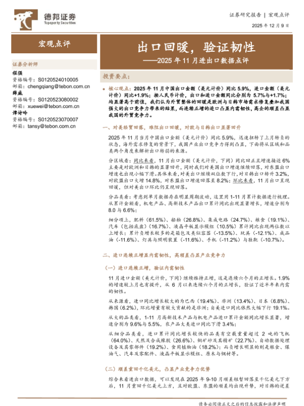 【德邦证券】【202511】出口回暖,验证韧性——2025年11月进出口数据点评-5页