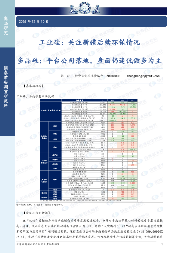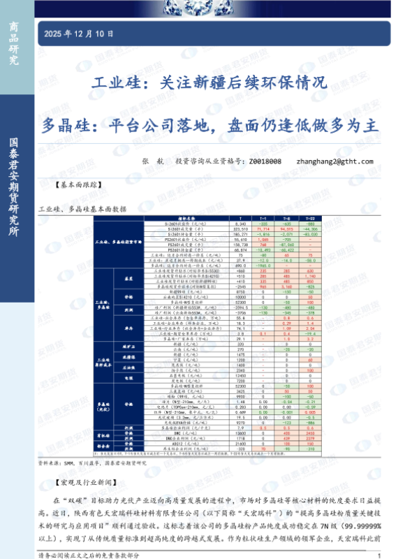 【国泰君安期货】【202512】工业硅_关注新疆后续环保情况_多晶硅_平台公司落地_盘面仍逢低做多为主-3页