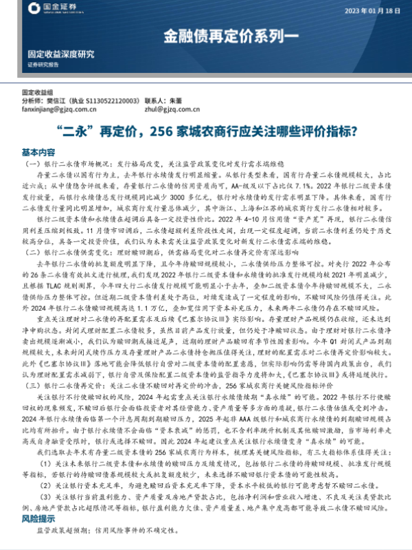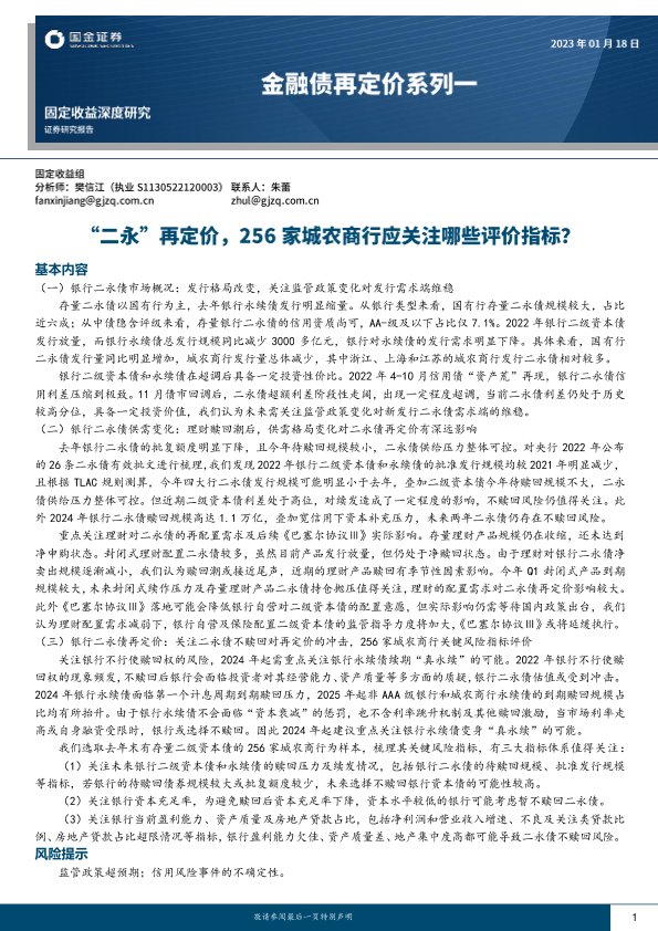 【国金证券】【20230118】金融债再定价系列一:“二永”再定价,256家城农商行应关注哪些评价指标?-20页