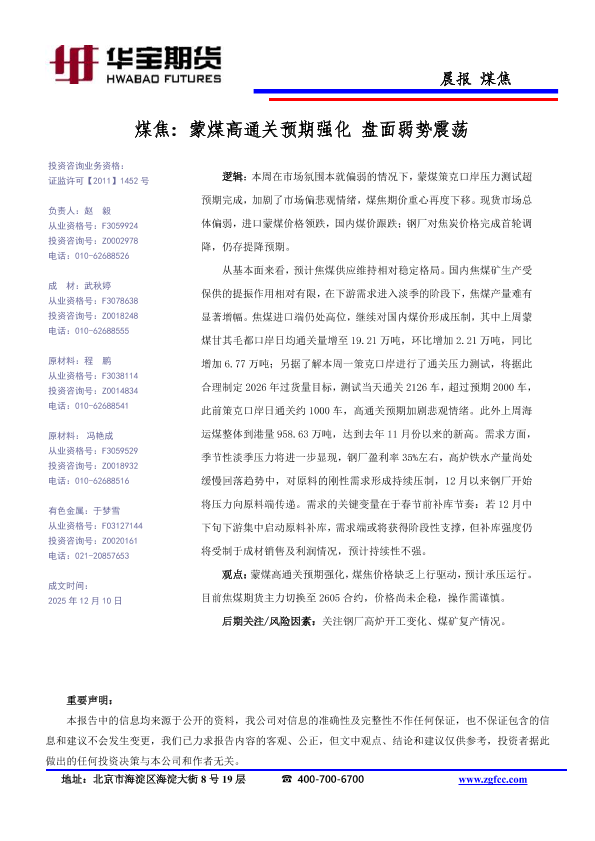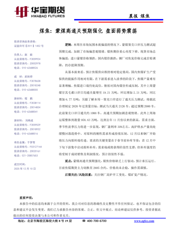 【华宝期货】【202512】煤焦_蒙煤高通关预期强化_盘面弱势震荡-1页