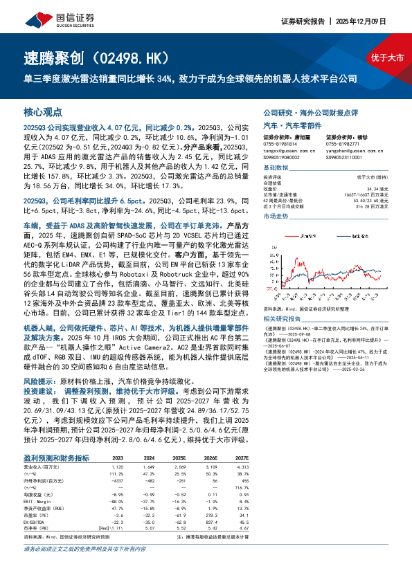 【国信证券】【202512】速腾聚创(02498.HK)-单三季度激光雷达销量同比增长34%,致力于成为全球领先的机器人技术平台公司-19页