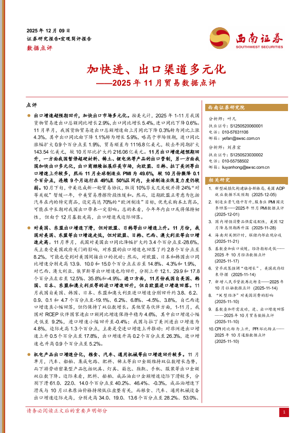 【西南证券】【2025】加快进、出口渠道多元化——2025年11月贸易数据点评-7页