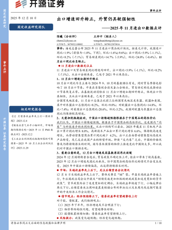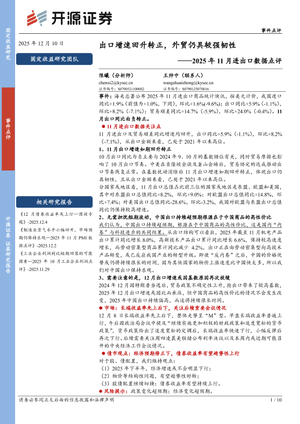 【开源证券】【202512】2025年11月进出口数据点评_出口增速回升转正_外贸仍具较强韧性-10页