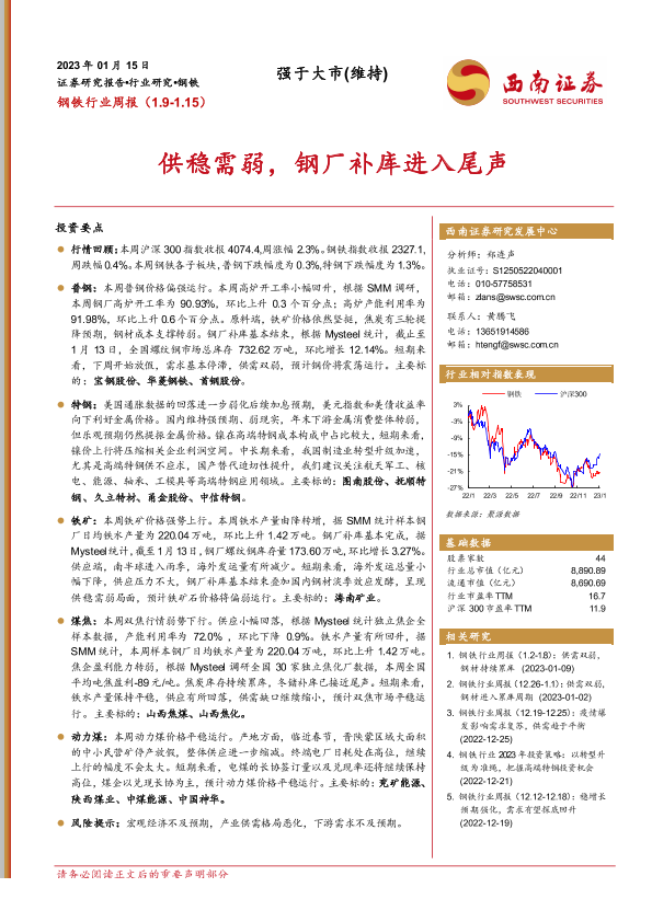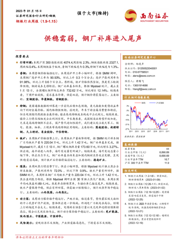 【西南证券】【20230115】钢铁行业周报:供稳需弱,钢厂补库进入尾声-16页