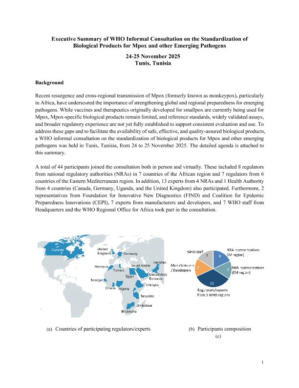 【世界卫生组织】【202511】Executive Summary of WHO Informal Consultation on the Standardization of Biological Products for Mpox and other Emerging Pathogens-7页