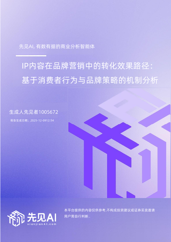 【先见AI】【2025】IP内容在品牌营销中的转化效果路径 基于消费者行为与品牌策略的机制分析-30页