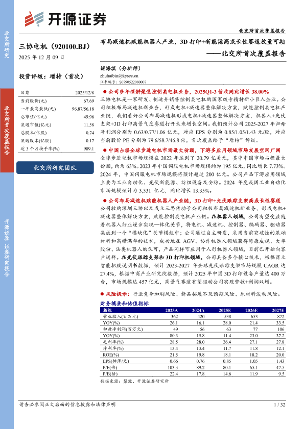 【开源证券】【202512】布局减速机赋能机器人产业,3D打印+新能源高成长性赛道放量可期-32页
