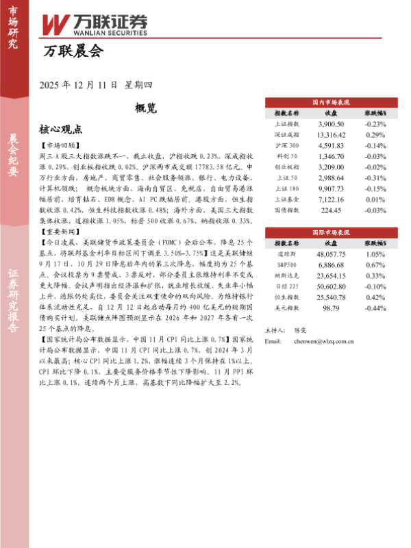 宏观经济 美联储降息 货币政策 股市分析 CPI数据