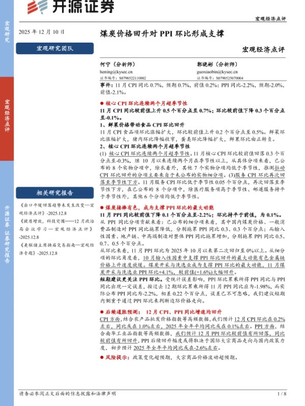【开源证券】【202512】宏观经济点评:煤炭价格回升对PPI环比形成支撑-8页