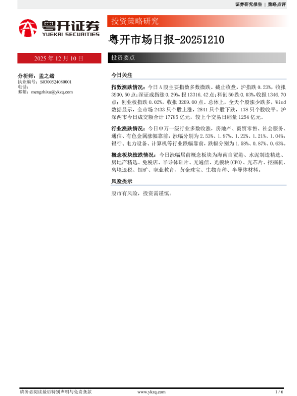 【粤开证券】【202512】粤开市场日报-20251210-6页
