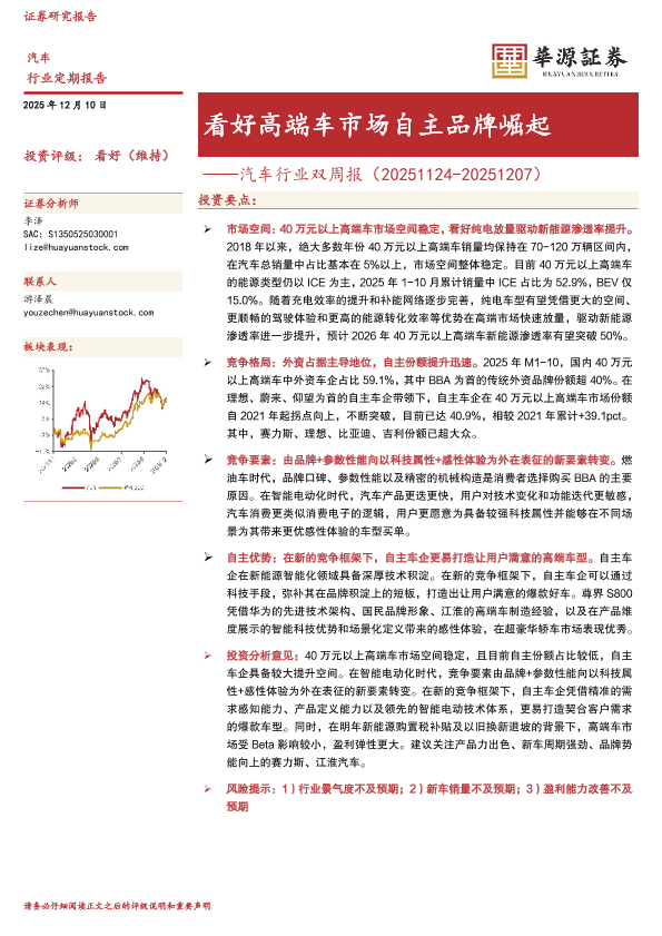 【华源证券】【202512】看好高端车市场自主品牌崛起——汽车行业双周报(20251124-20251207)-14页