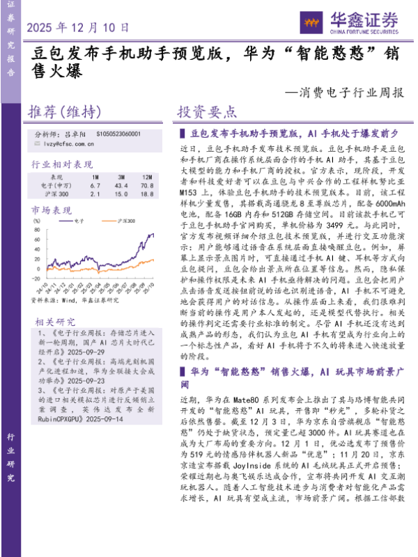 【华鑫证券】【202512】豆包发布手机助手预览版,华为“智能憨憨”销售火爆-32页