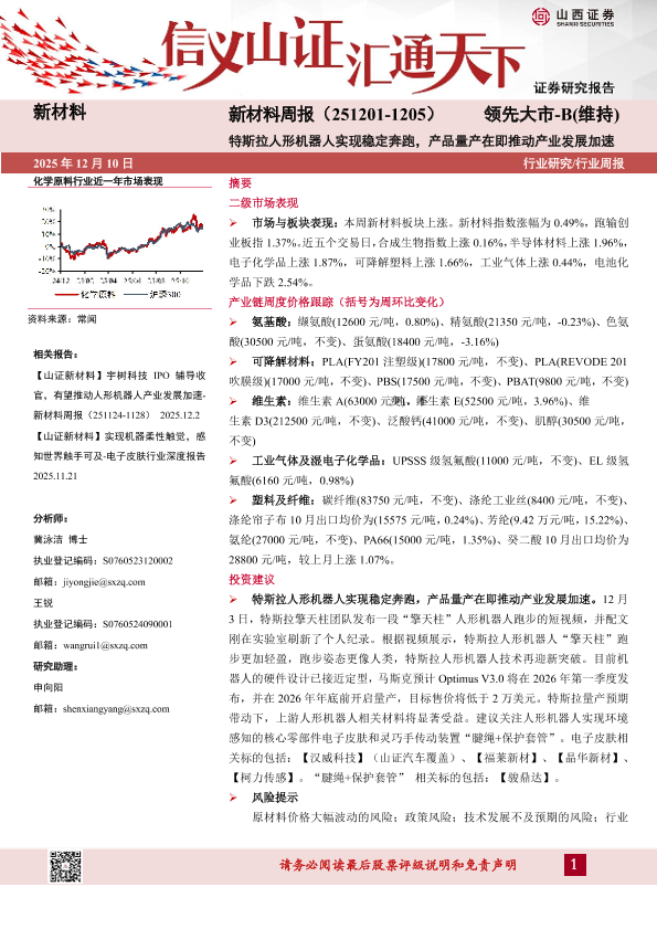 【山西证券】【202512】新材料周报(251201-1205)领先大市-B(维持)特斯拉人形机器人实现稳定奔跑,产品量产在即推动产业发展加速-23页