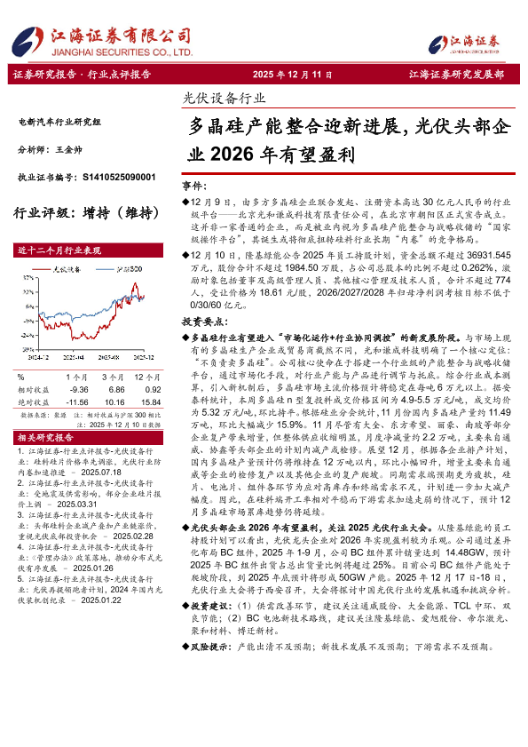 【江海证券】【202512】光伏设备行业_多晶硅产能整合迎新进展_光伏头部企业2026年有望盈利-3页