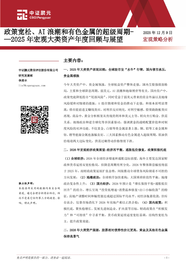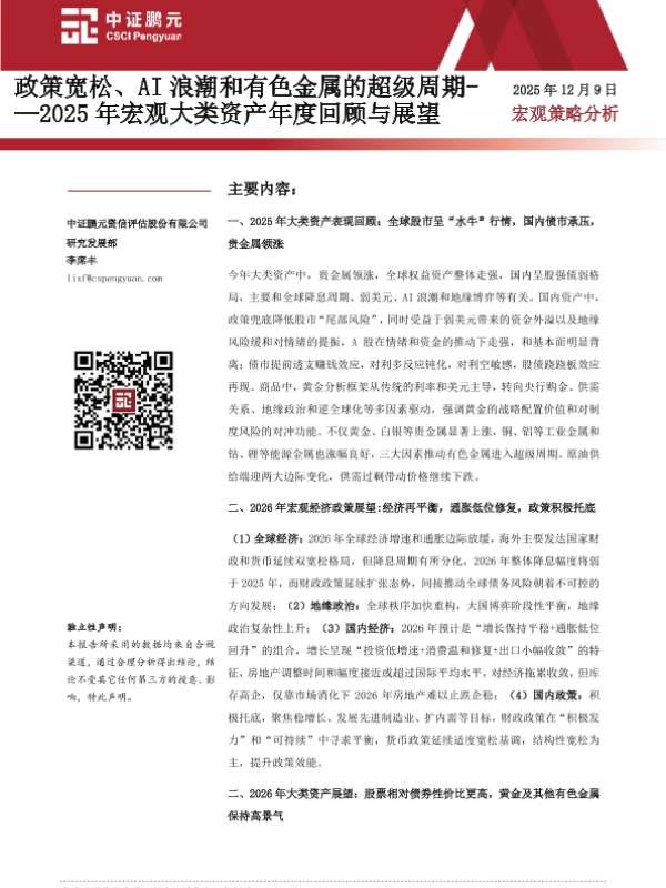 【中证鹏元资信评估股份有限公司】【202512】2025年宏观大类资产年度回顾与展望_政策宽松_AI浪潮和有色金属的超级周期-18页
