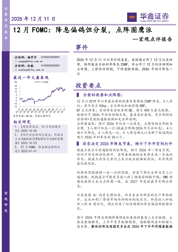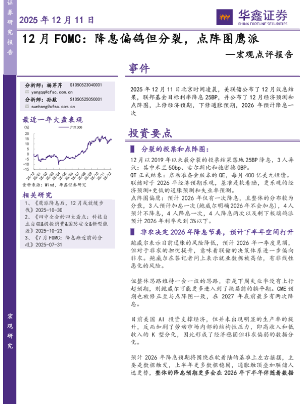【华鑫证券】【202512】12月FOMC:降息偏鸽但分裂,点阵图鹰派-4页
