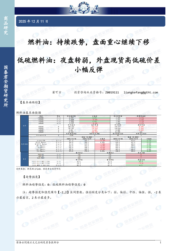 【国泰君安期货】【202512】燃料油:持续跌势,盘面重心继续下移;低硫燃料油:夜盘转弱,外盘现货高低硫价差小幅反弹-2页