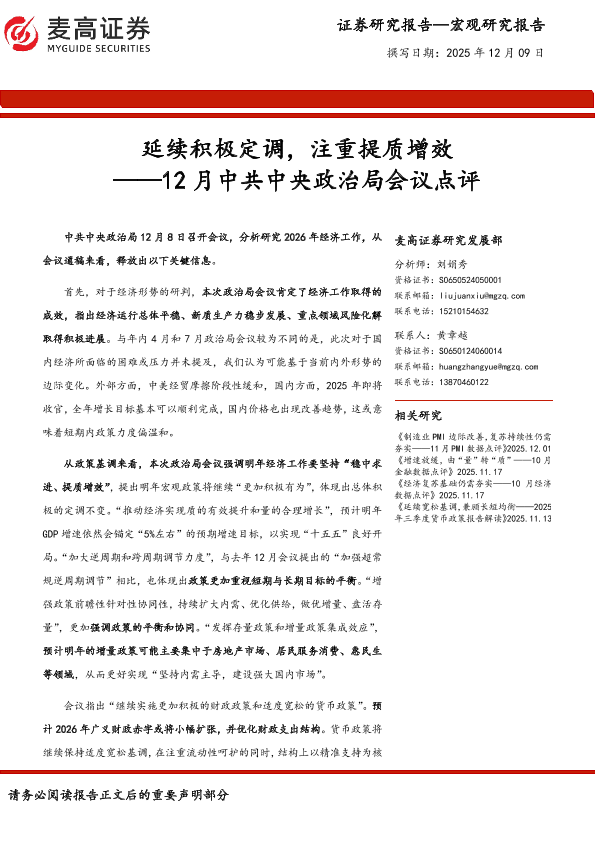 【麦高证券】【202512】延续积极定调,注重提质增效——12月中共中央政治局会议点评-5页