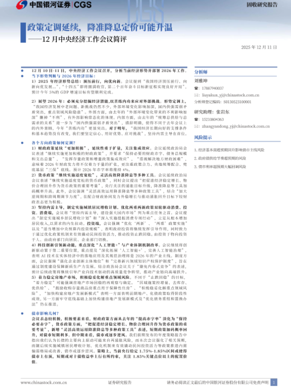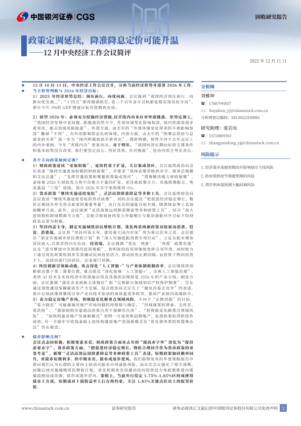 【银河证券】【202512】2025年12月中央经济工作会议简评_政策定调延续_降准降息定价可能升温-4页