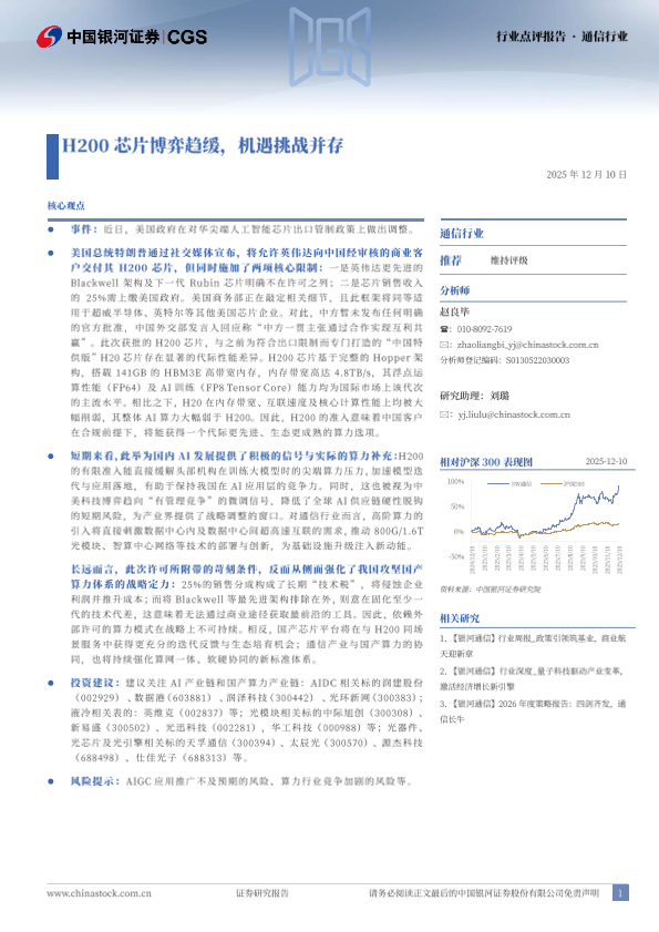 【银河证券】【202512】通信行业_H200芯片博弈趋缓_机遇挑战并存-2页