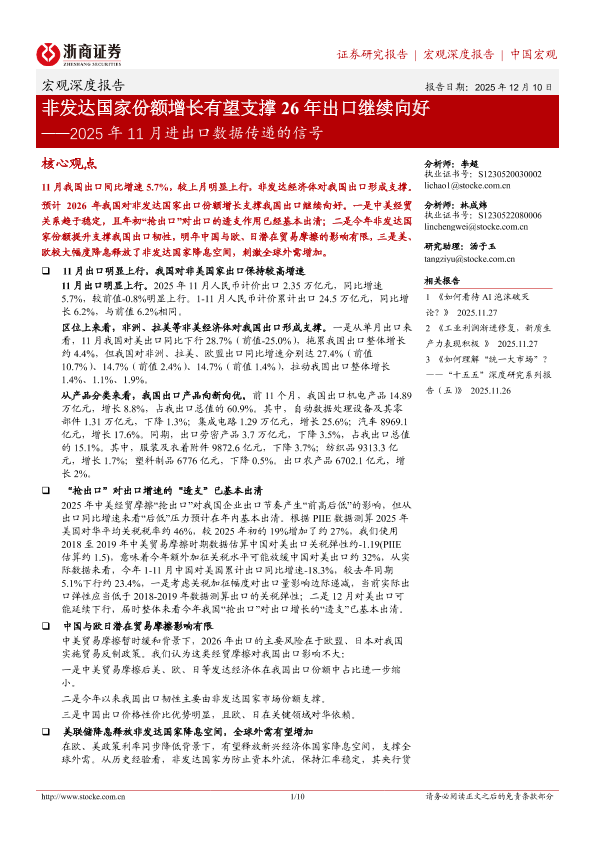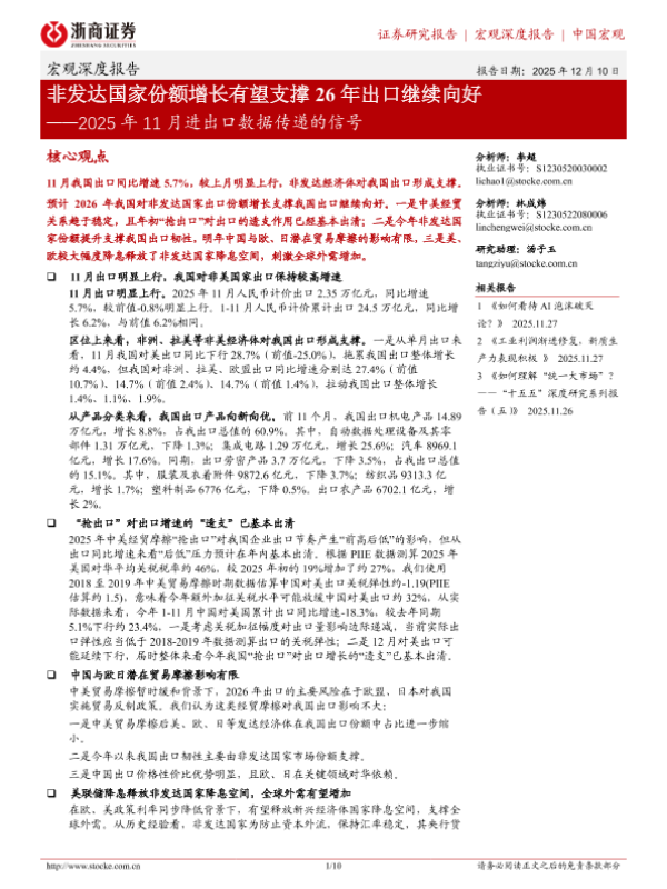 【浙商证券】【202512】2025年11月进出口数据传递的信号_非发达国家份额增长有望支撑26年出口继续向好-10页