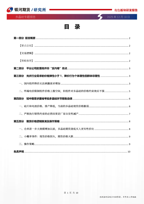 【银河期货】【202512】多晶硅专题报告:多晶硅平台公司落地,考验行业自律执行力-10页