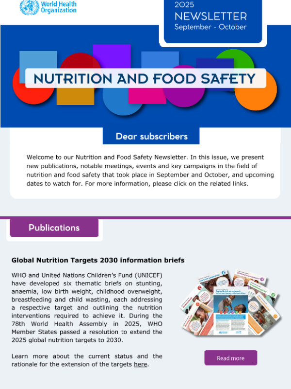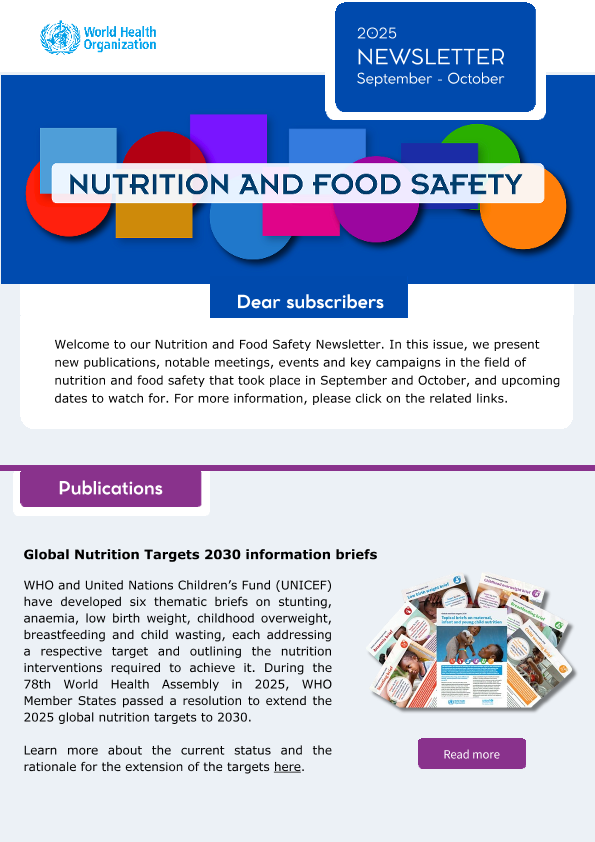 【World Health Organization】【202510】Nutrition and Food Safety Newsletter. In this issue, we present new publications, notable meetings, events and key campaigns in the field of nutrition and food safety that took place in September and October, and upcoming dates to watch for.-9页