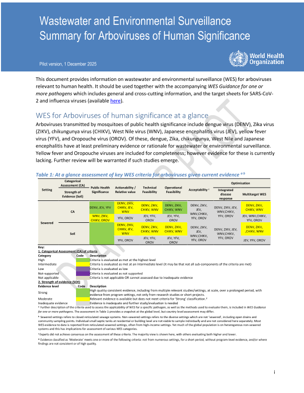 【世界卫生组织】【202512】Wastewater and environmental surveillance Summary for Arboviruses of human significance-34页