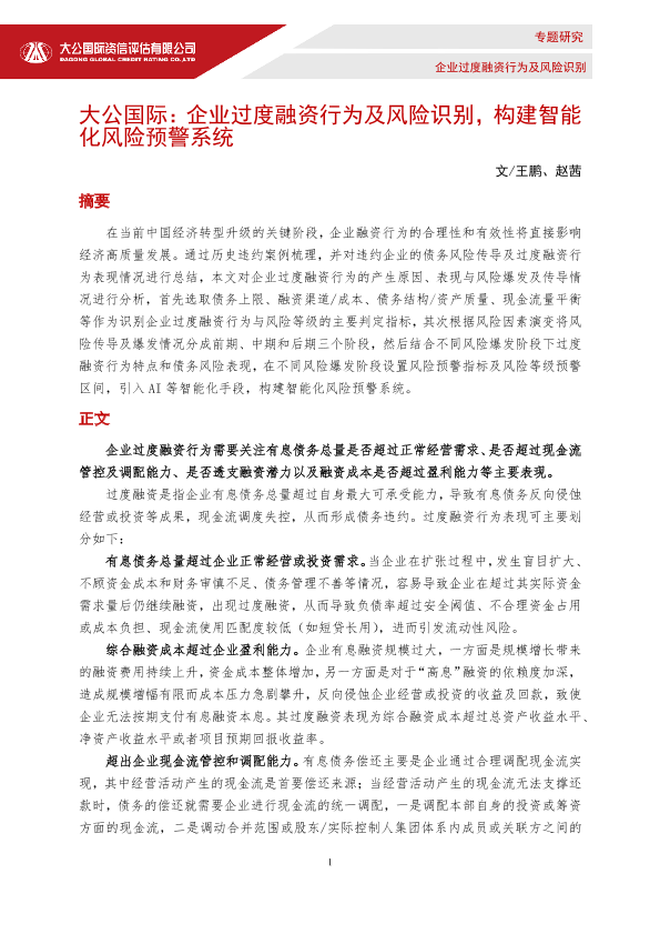 【大公国际】【2025】企业过度融资行为及风险识别,构建智能化风险预警系统-5页