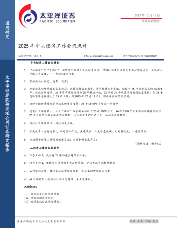 【太平洋证券】【202512】2025年中央经济工作会议点评-2页