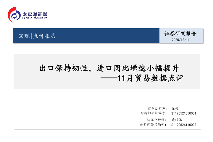 【太平洋证券】【2025】出口保持韧性,进口同比增速小幅提升-13页