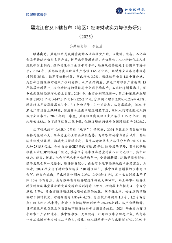【公共融资部 李星星】【2025】黑龙江省及下辖各市(地区)经济财政实力与债务研究(2025)-26页