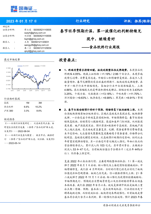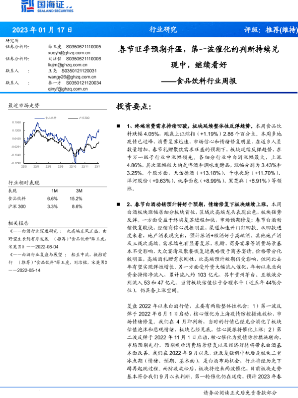 【国海证券】【20230117】食品饮料行业周报:春节旺季预期升温,第一波催化的判断持续兑现中,继续看好-20页