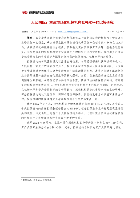【大公国际】【202512】主流市场化担保机构杠杆水平的比较研究-4页