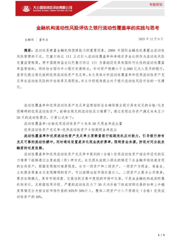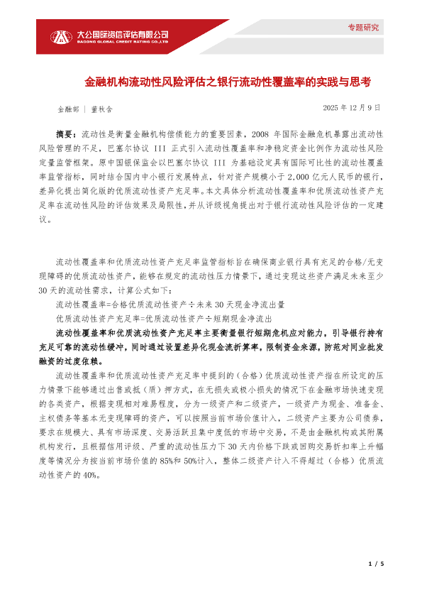 【大公国际】【2025】金融机构流动性风险评估之银行流动性覆盖率的实践与思考-5页
