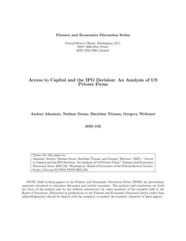 【Federal Reserve Board】【2025】Access to Capital and the IPO Decision An Analysis of US Private Firms-73页