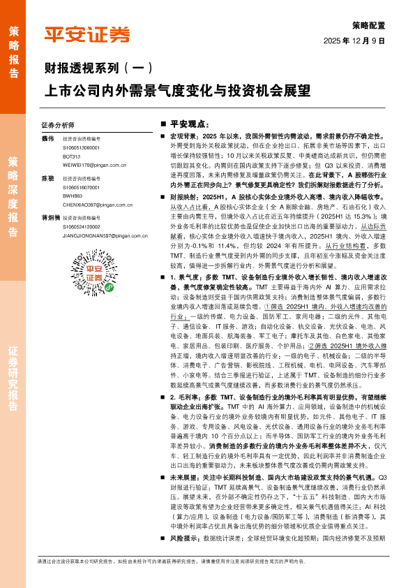 【平安证券】【2025】财报透视系列(一)上市公司内外需景气度变化与投资机会展望-22页