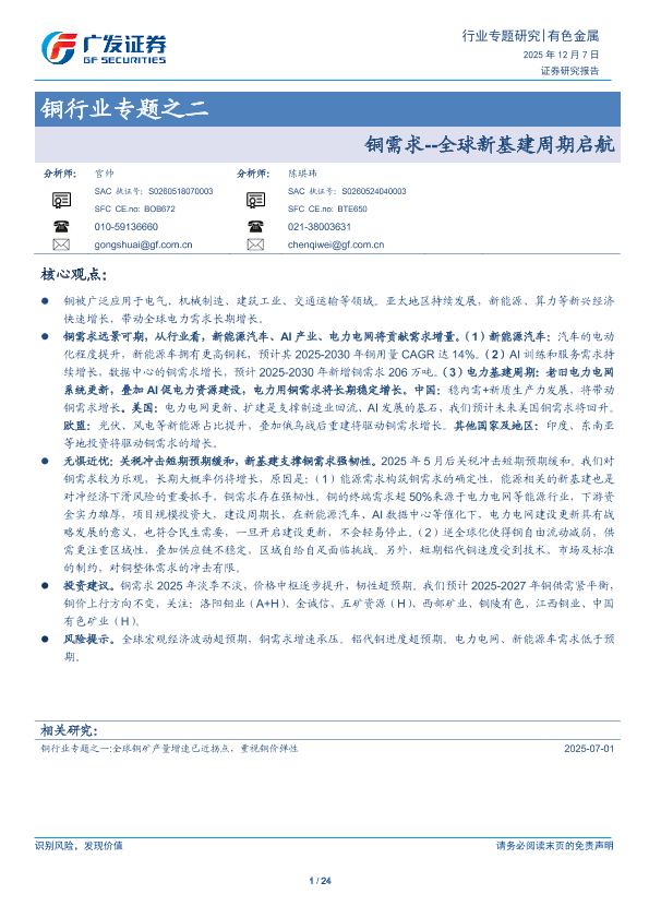 【广发证券】【202507】铜需求--全球新基建周期启航-24页