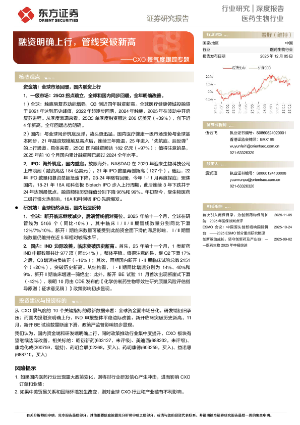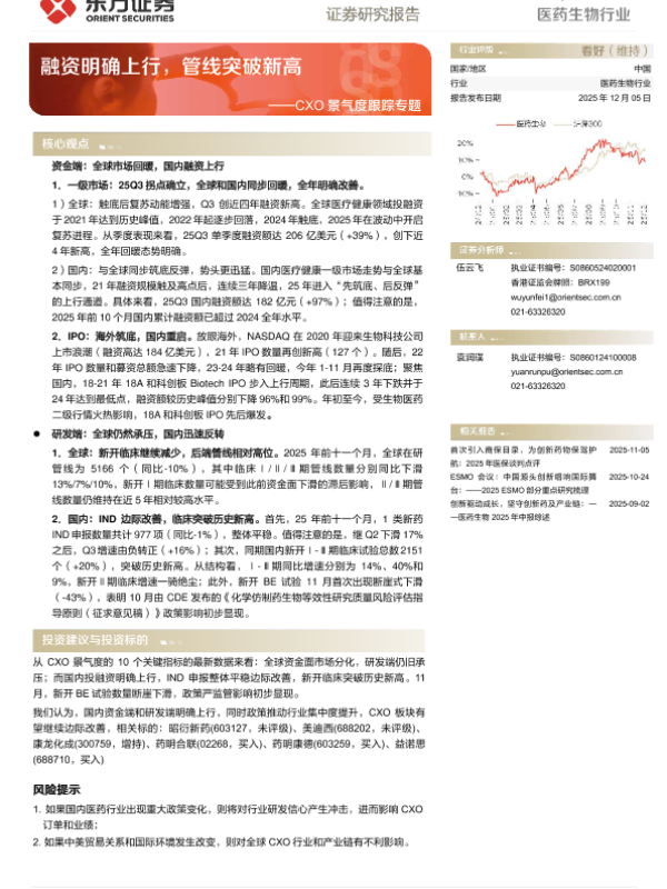 融资回暖 研发管线 生物医药 CXO 行业分析