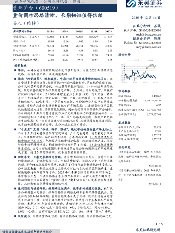 投资评级 贵州茅台 量价调控 白酒行业 十五五规划