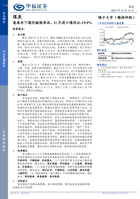 【华福证券】【202512】高库存下煤价继续承压,11月进口煤同比-19.9%-25页