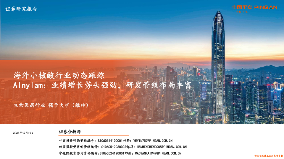 【平安证券】【202512】海外小核酸行业动态跟踪——Alnylam-业绩增长势头强劲_研发管线布局丰富-18页