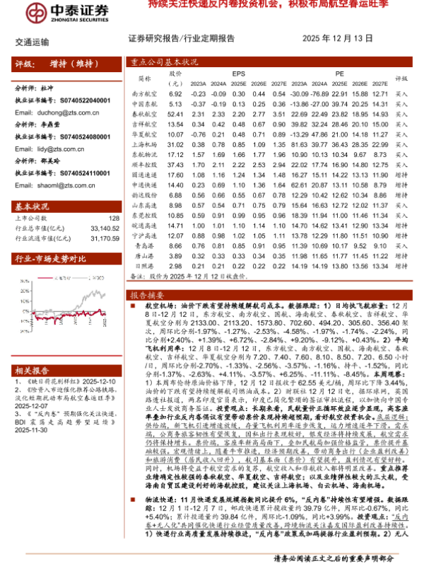 【中泰证券】【202512】20251213-中泰证券-交通运输行业_持续关注快递反内卷投资机会_积极布局航空春运旺季_24页_2mb.pdf-24页