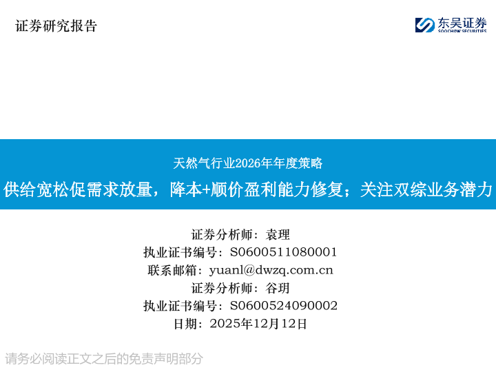 【东吴证券】【202512】天然气行业2026年年度策略-38页